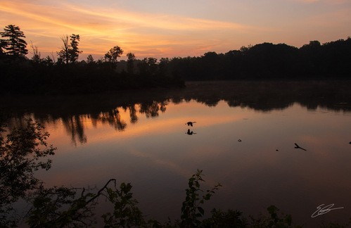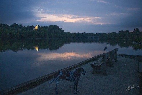 The second was from near the main area of Winton Woods and this photo brought together four of my favorite things - Scout, a sunrise, this bench, and one of the many herons. Again, another of those "just happened that way" moments.